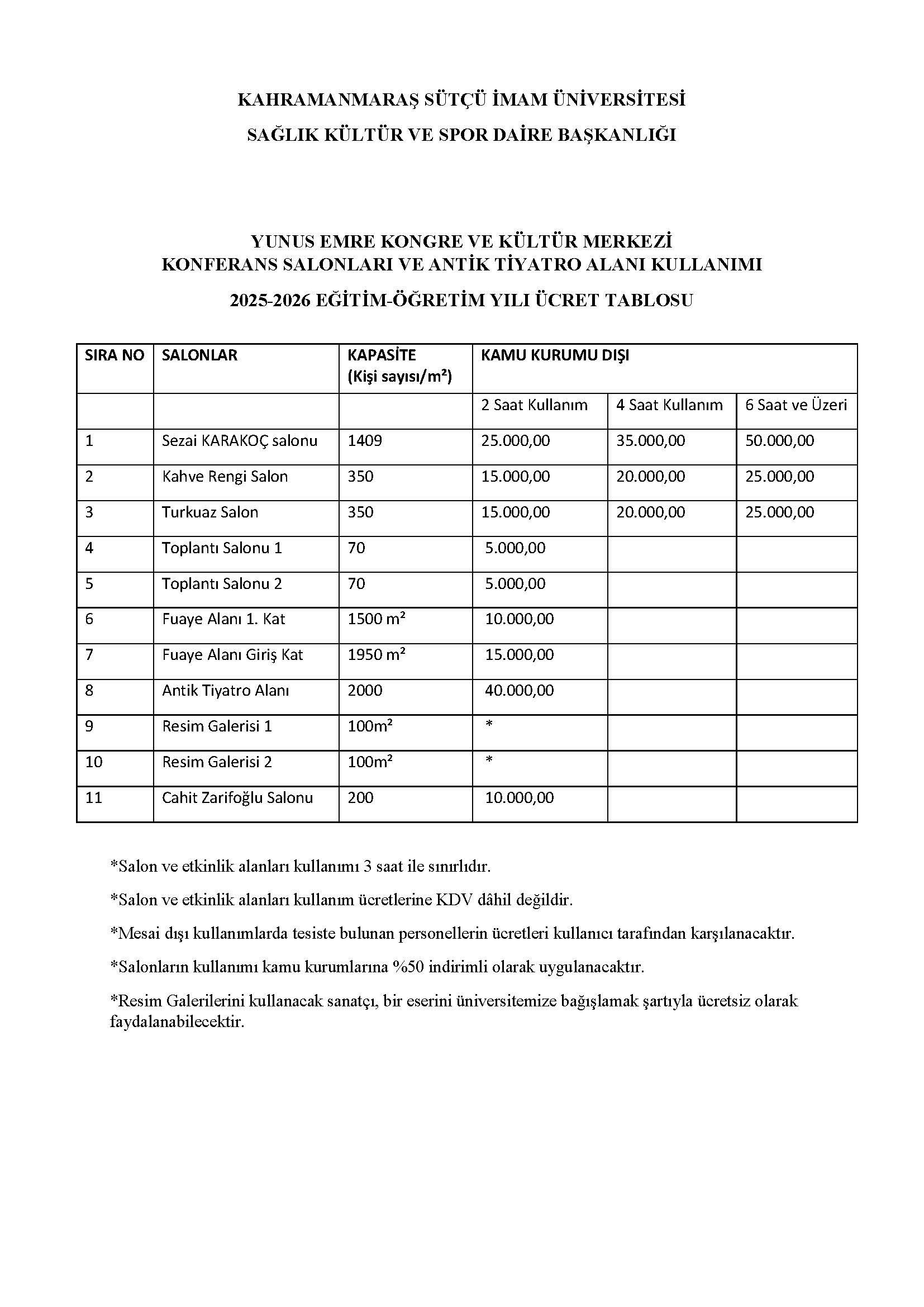 04.11.2025 - Konferans Salonları ve Antik Tiyatro Alanı Kullanım Ücretleri